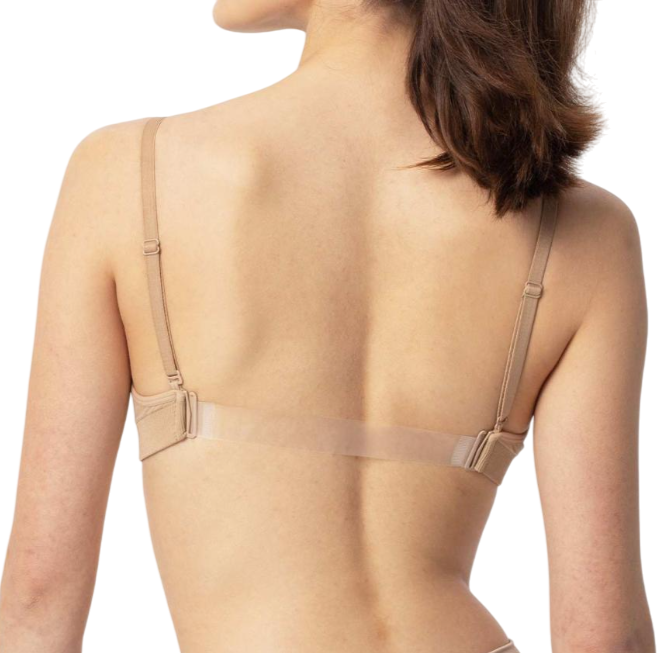 Seamless Clear Back Nude Bra Intermezzo Underwear with removable pads. This bra has adjustable straps and the back is made of silicone. Straps can also be changed to silicone straps witch are included.