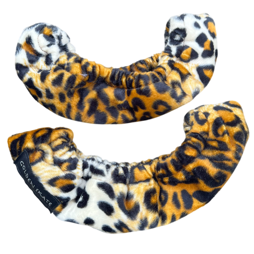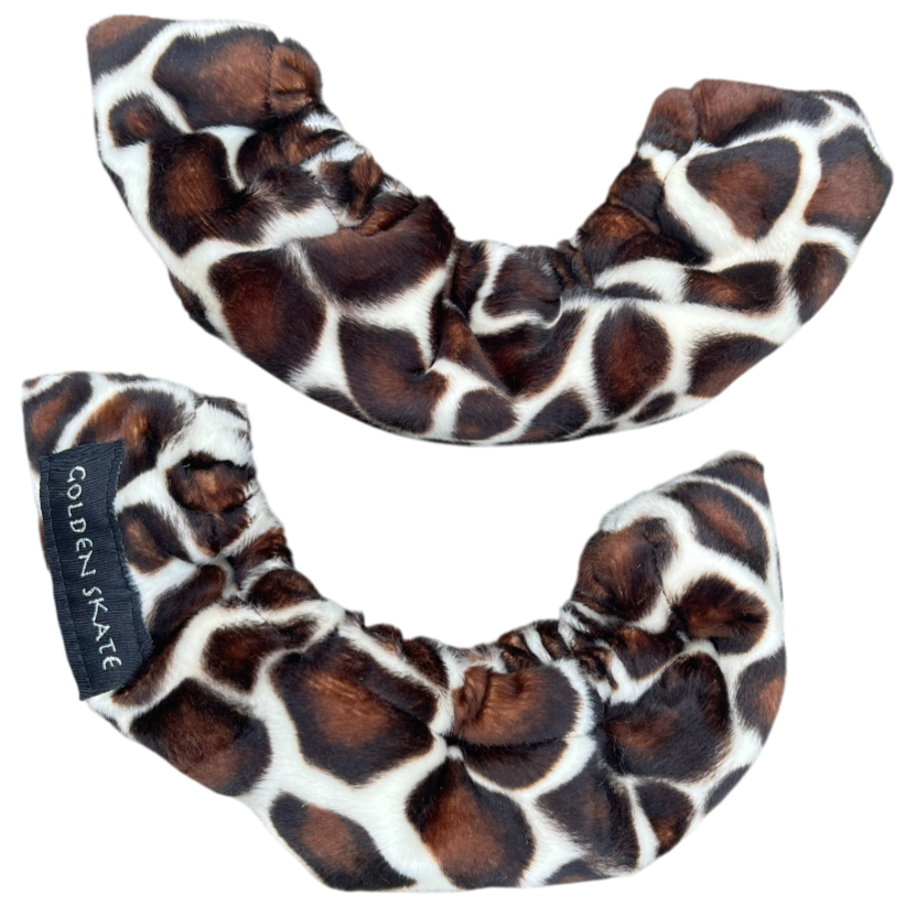Animal print soft blade guards for storing skates.