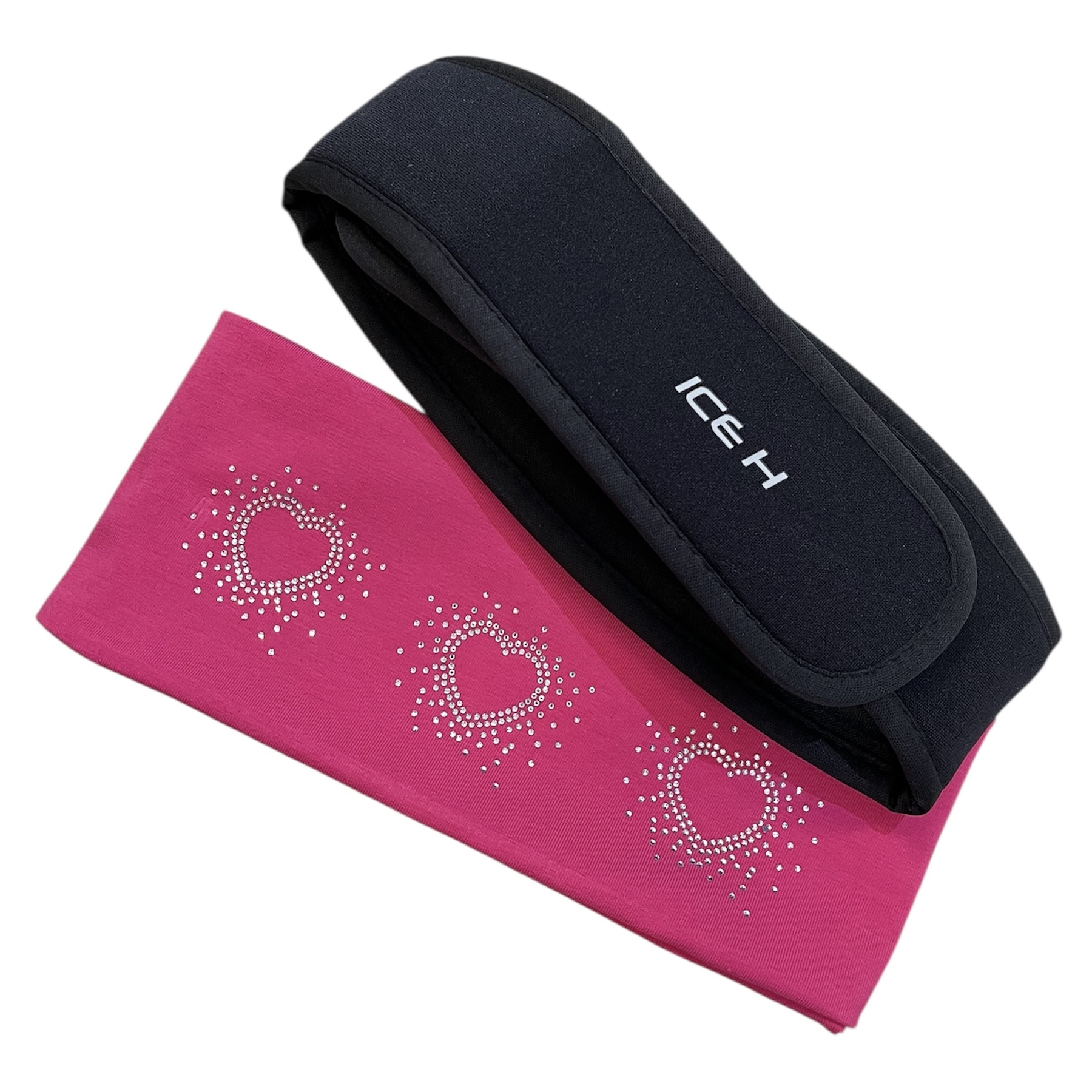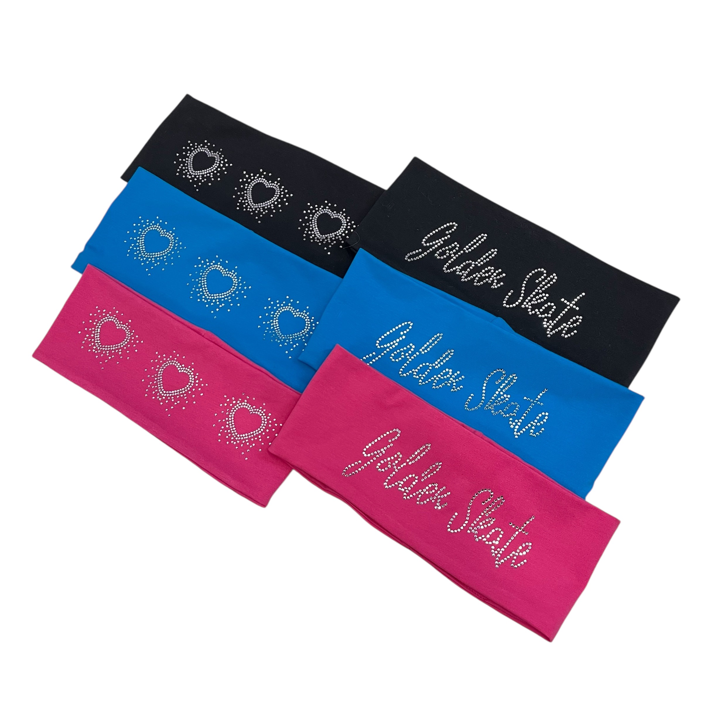 The skating band helps keep the protective headband securely in place during movement. A beautiful rhinestone print completes the stylish look.