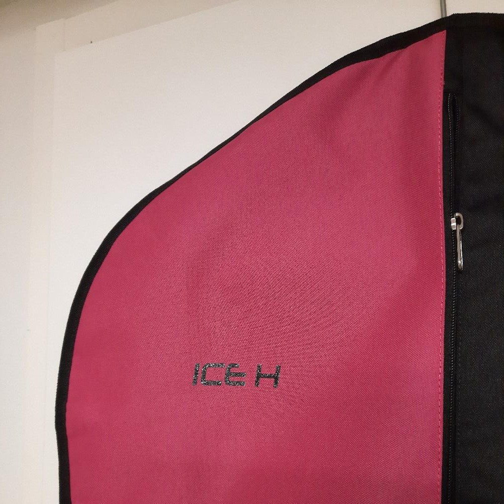 The suit bag made of strong, water-repellent material that is durable even in long-term use. On the front, there is a embedded rhinestones “Skating” text.