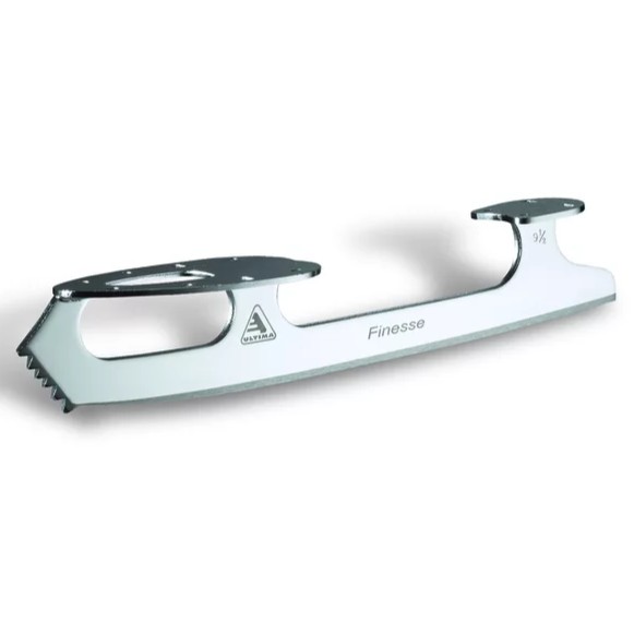 Jackson Ultima Finesse UB55 – for Synchro and Dance skaters. Pick format reduces scratch, yet can still accommodate jumps and spins. Short heel assists during close maneuvers. This blade is an outgoing model.