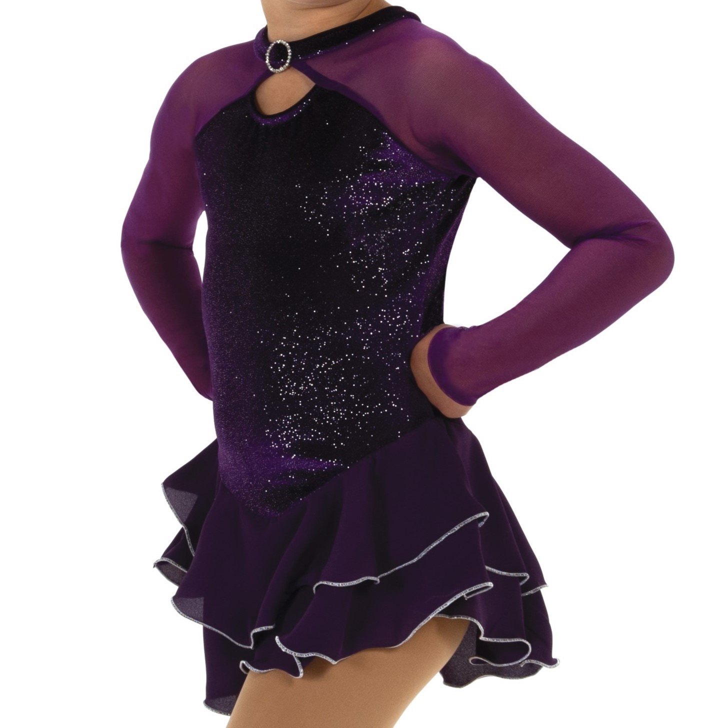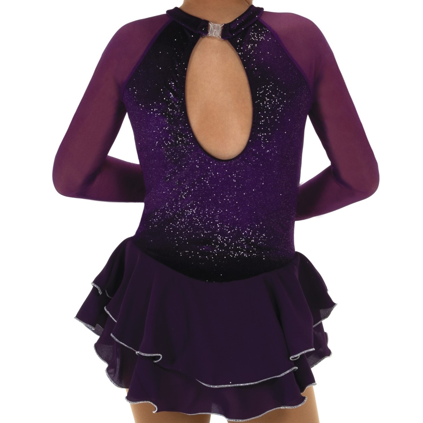 Soft shimmer velvet dresses with long mesh sleeves, double layer georgette skirts edged in silver and tiny front keyholes with a ring of crystals for a necklace style look. Traditional style back keyhole.