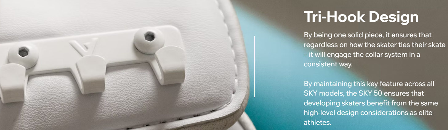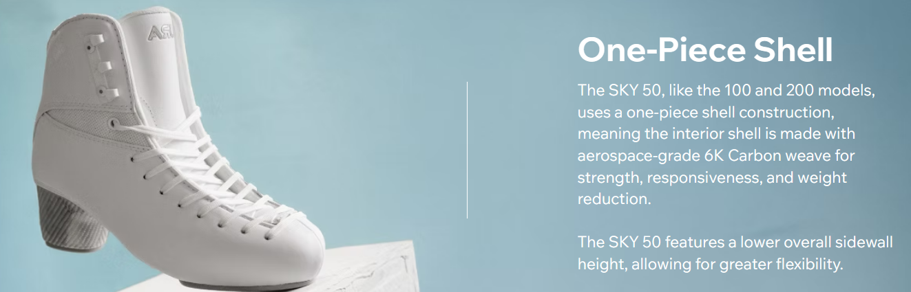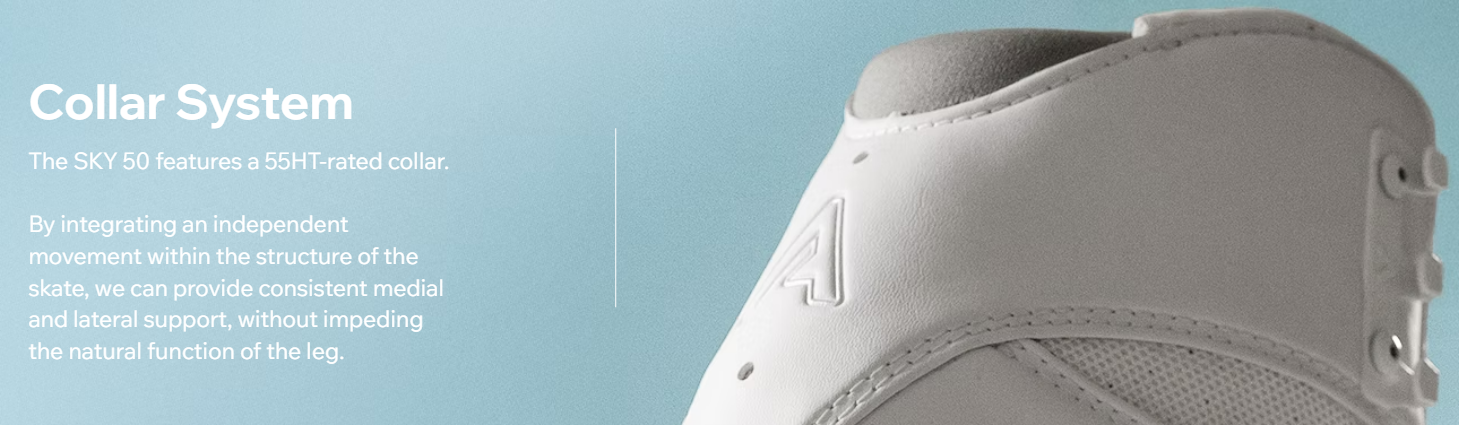 Aura Sky 50 luistinkenkä – on kevyt ja mukava taitoluistin, joka tukee harjoittelun kehittymistä. Aura Sky 50 luistinkenkä on loistava valinta kaksoishyppyjä harjoittelevalle luistelijalle. Se istuu jalkaan hyvin ja antaa varmuutta jäällä. Lämpömuovattava rakenne tekee istuvuudesta yksilöllisen ja miellyttävän heti ensimmäisestä käyttökerrasta alkaen.