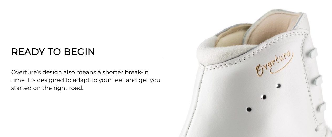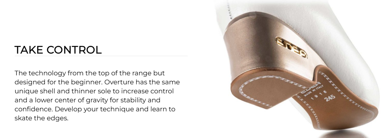 Edea Overture – on laadukas taitoluistin aloittaville ja kehittyville luistelijoille. Luistin tarjoaa hyvän tuen yksöishyppyjen harjoitteluun sekä muodostelmaluisteluun tulokas- ja minoritasolle. Edea Overture taitoluistinkenkä takaa vakaan ja mukavan istuvuuden. Kevyt rakenne ja pehmeä sisus lisäävät käyttömukavuutta ja hallintaa jäällä.