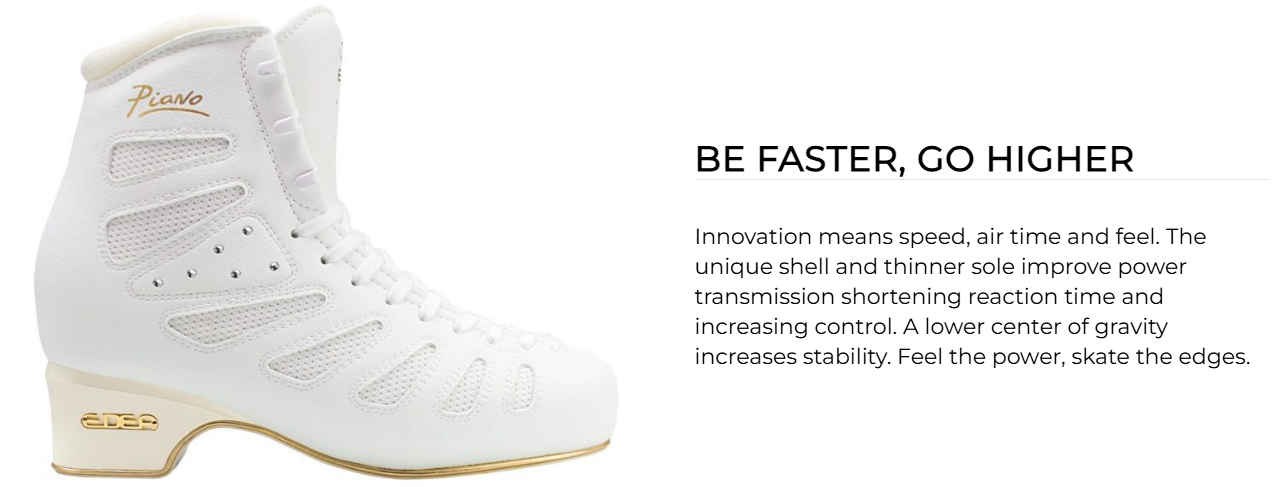 Edea Piano – kenkä on erityisen vaativaan luisteluun tarkoitettu kenkä. Luistimet ovat tarkoitettu kolmois- ja neloishyppyjä harjoitteleville luistelijoille.