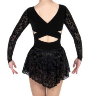 Jerry´s yksinkertainen ja tyylikäs taivaan sininen luistelupuku. Kilpailupuvussa on pitkät samettihihat. Puvun selkäosa on kauniisti leikattu ja helma on linjakkaasti takaa pidempi.