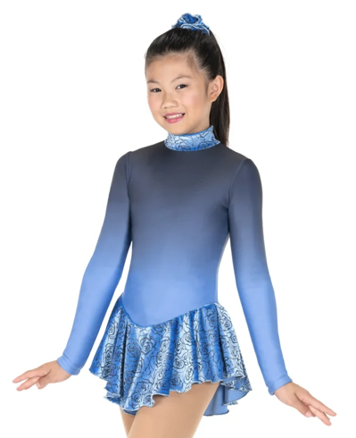 Helmassa on kaunis kuviointi, puku on lämmin ja pitkähihainen. Korkea kaulus lämmittää ja puvussa on vetoketju sujuvoittamaan luistelupuvun päälle pukemista.
