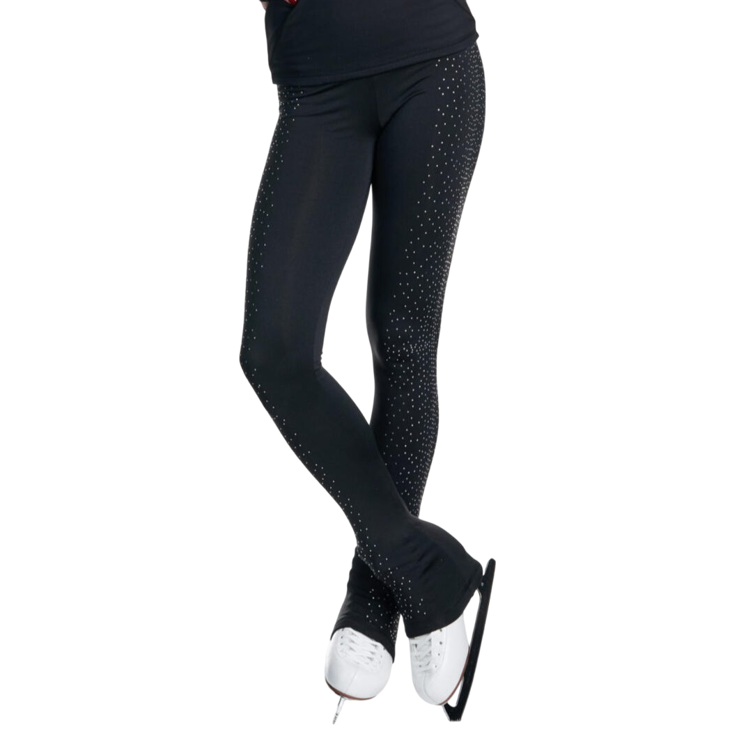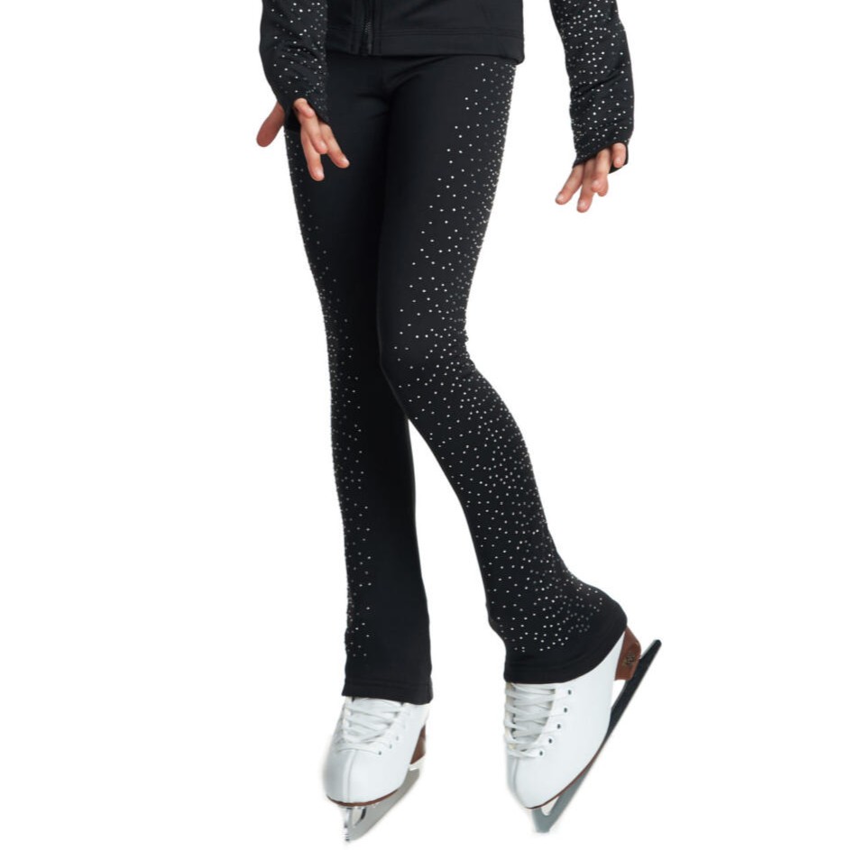 Jääharjoitteluun tarkoitetut upeat Jiv Milkyway housut kirkkailla strassikoristeilla. Milkyway materiaali on samalla lämmin ja materiaali on tukevaa. Housujen vyötärö on korkea ja punteissa on kuminauhat, jotka auttavat pitämään housun lahkeen paikallaan luistimen päällä.