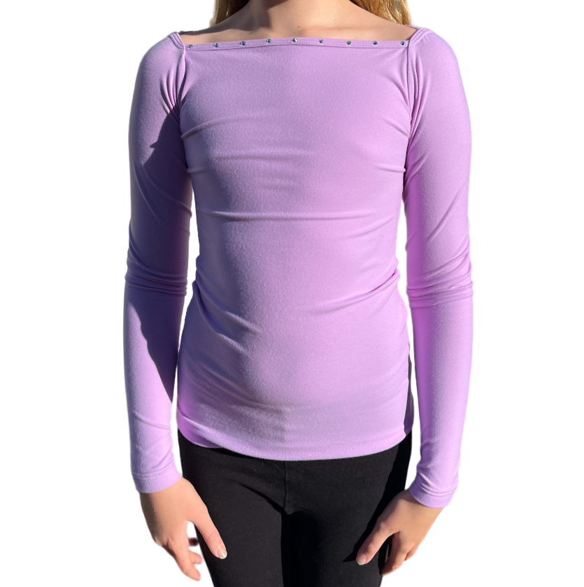 Karisman strassikoristeltu pitkähihainen Titta pusero. Selässä ja pääntiessä kaunis strassattu yksityiskohta. Väri: Lila/Pony. Pusero on tyylikkään istuva ja erittäin pehmeä päällä.
