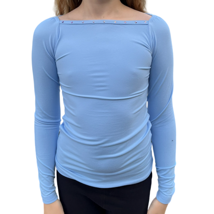 Karisman strassikoristeltu pitkähihainen Titta pusero. Selässä ja pääntiessä kaunis strassattu yksityiskohta. Väri: vaaleansininen/Fish. Pusero in ihanan tyköistuva ja pehmeä päällä.