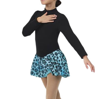 Mondor värikkäällä turkoosilla helmalla oleva Polartec luistelupuku. Polartec on lämmin materiaali, joten se soveltuu erityisen hyvin myös aloittelijoille.