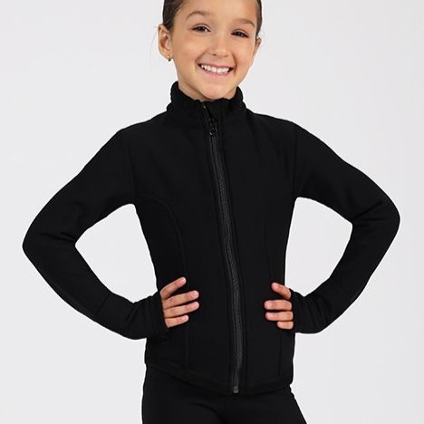 Mondor musta harjoitustakki taitoluisteluun on lämmitä polartec materiaalia. Luistelutakissa on kaunis kimallekoriste selässä.