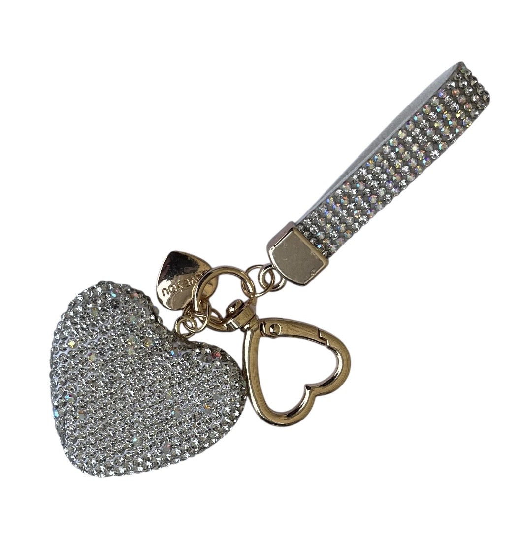 Näyttävä strassikoristeltu sydän avaimenperä, sydän lukolla ja riipuksella jossa lukee ”love you” avaimiin tai laukkuun.